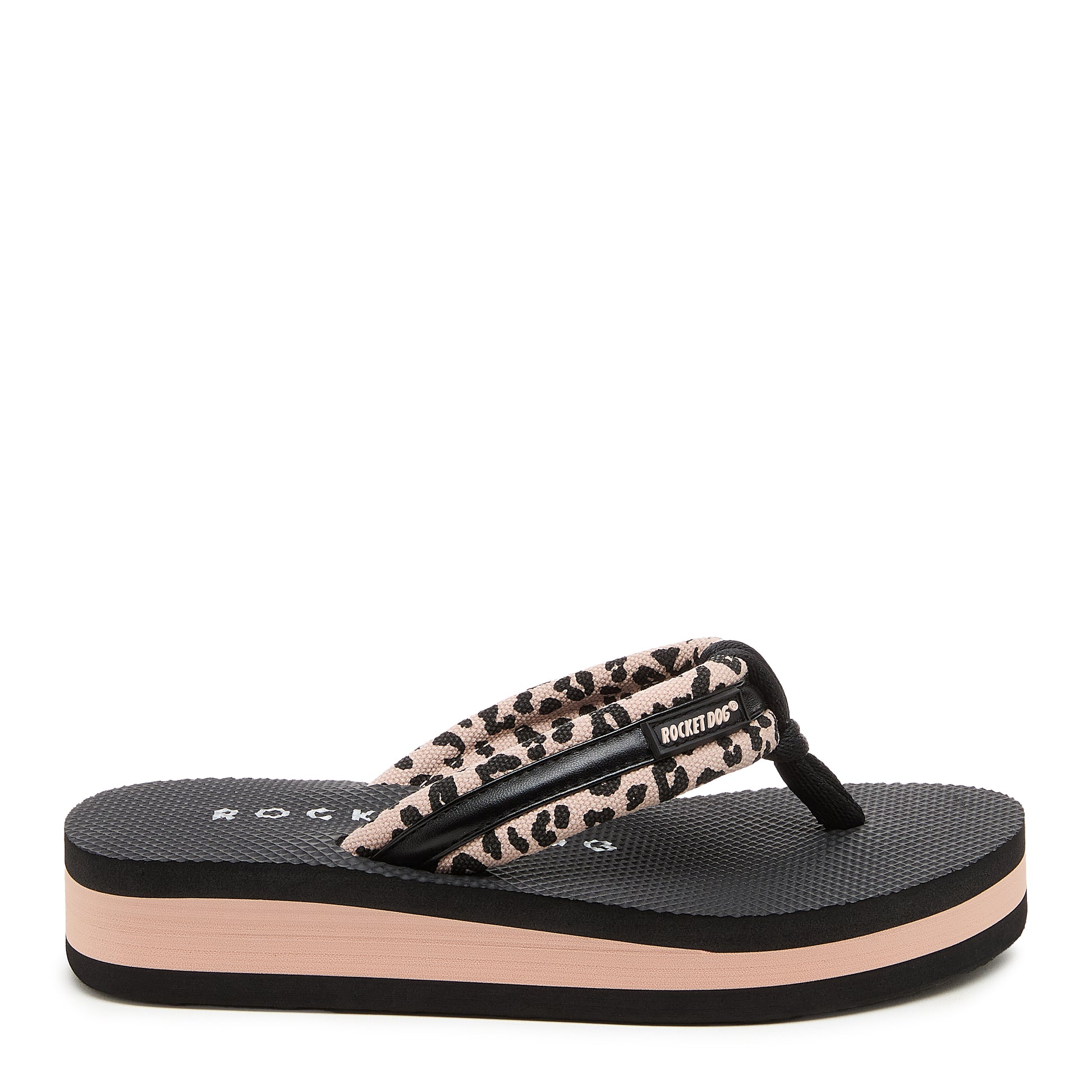 Light pink leopard platform flip-flops for carefree days.